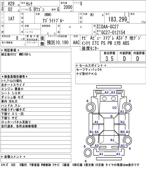Nissan SERENA с аукциона Японии NAA Osaka лот № 7014