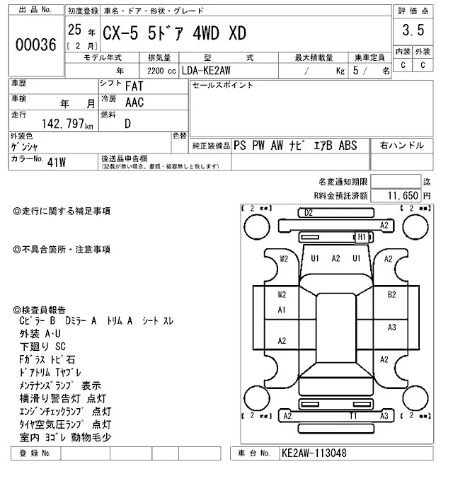 Mazda CX-5 с аукциона Японии ARAI Oyama лот № 36