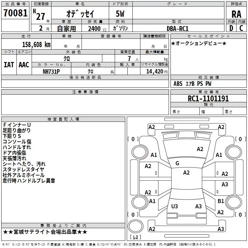 Honda ODYSSEY с аукциона Японии TAA Tohoku лот № 70081