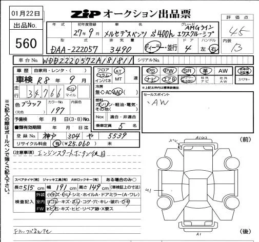 Mercedes-Benz S CLASS с аукциона Японии ZIP Osaka лот № 560