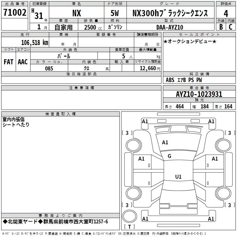 Lexus NX с аукциона Японии TAA Kanto лот № 71002