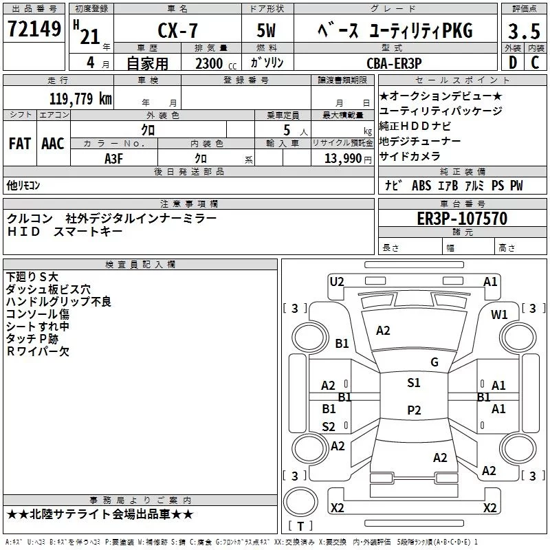 Mazda CX-7 с аукциона Японии TAA Chubu лот № 72149