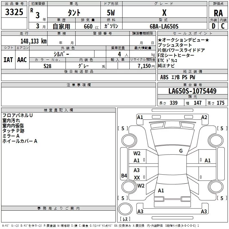Daihatsu TANTO с аукциона Японии TAA Kanto лот № 3325
