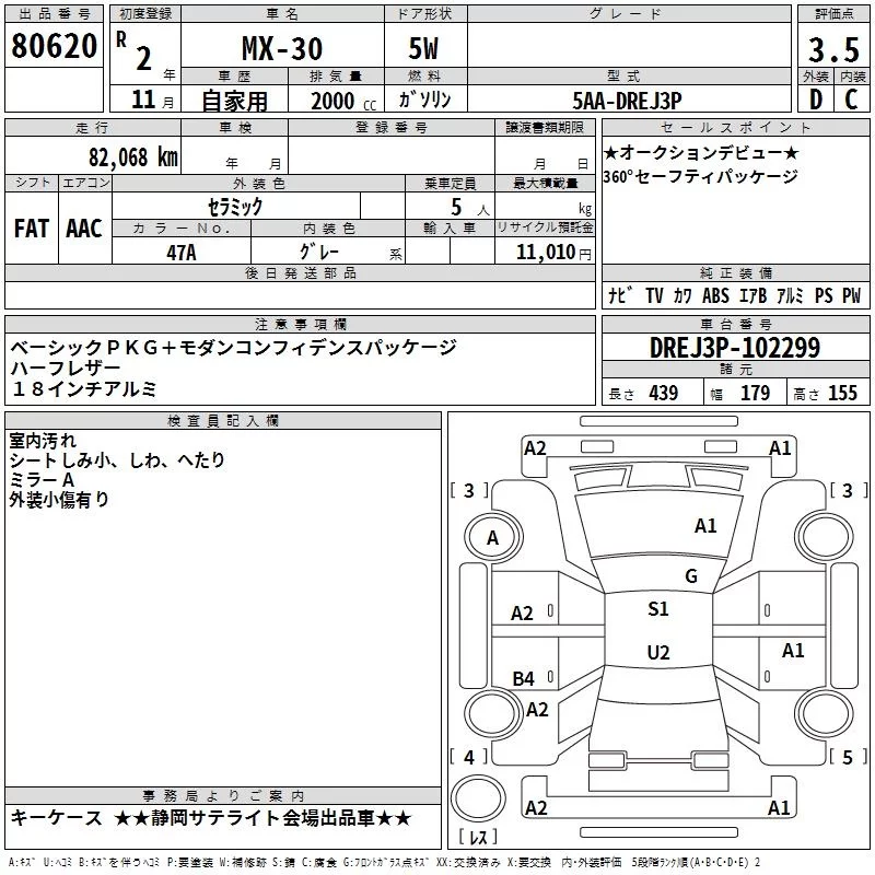 Mazda MX-30 с аукциона Японии TAA Chubu лот № 80620
