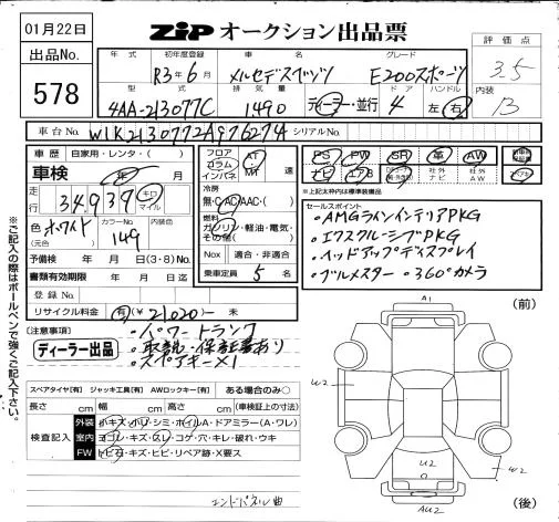 Mercedes-Benz E CLASS с аукциона Японии ZIP Osaka лот № 578