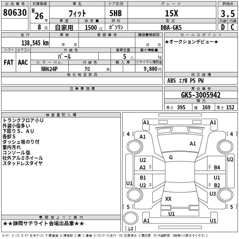 Honda FIT с аукциона Японии TAA Chubu лот № 80630
