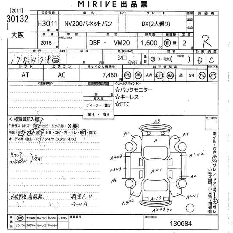 Nissan NV200 с аукциона Японии MIRIVE Osaka лот № 30132