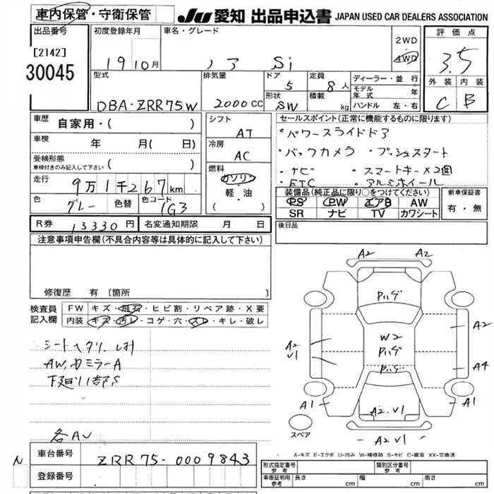 Toyota NOAH с аукциона Японии JU Aichi лот № 30045