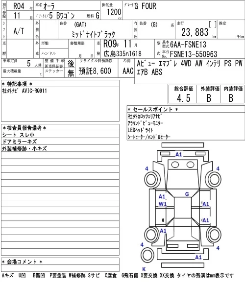 Nissan AURA с аукциона Японии NAA Osaka лот № 1006
