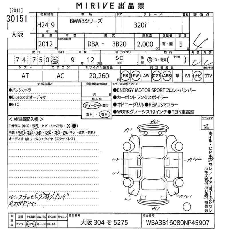 BMW 3-Series с аукциона Японии MIRIVE Osaka лот № 30151