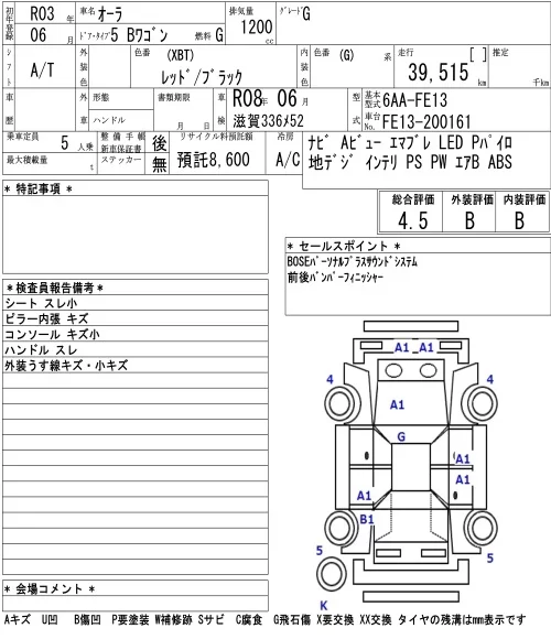 Nissan AURA с аукциона Японии NAA Osaka лот № 1010