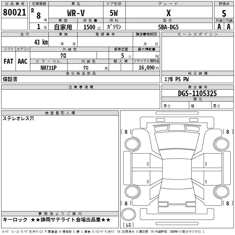 Honda WR-V с аукциона Японии TAA Chubu лот № 80021