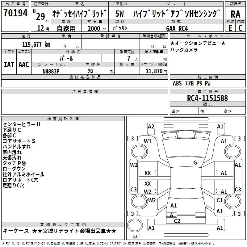 Honda ODYSSEY с аукциона Японии TAA Tohoku лот № 70194