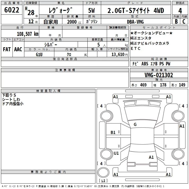 Subaru LEVORG с аукциона Японии TAA Hokkaido лот № 6022