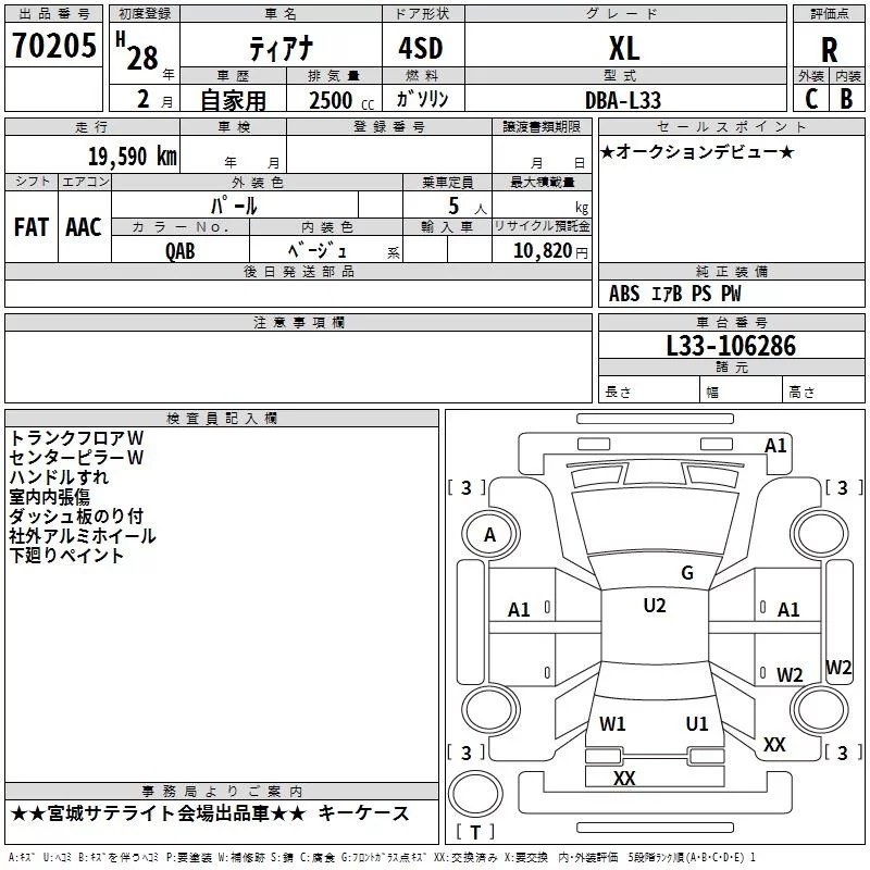 Nissan TEANA с аукциона Японии TAA Tohoku лот № 70205