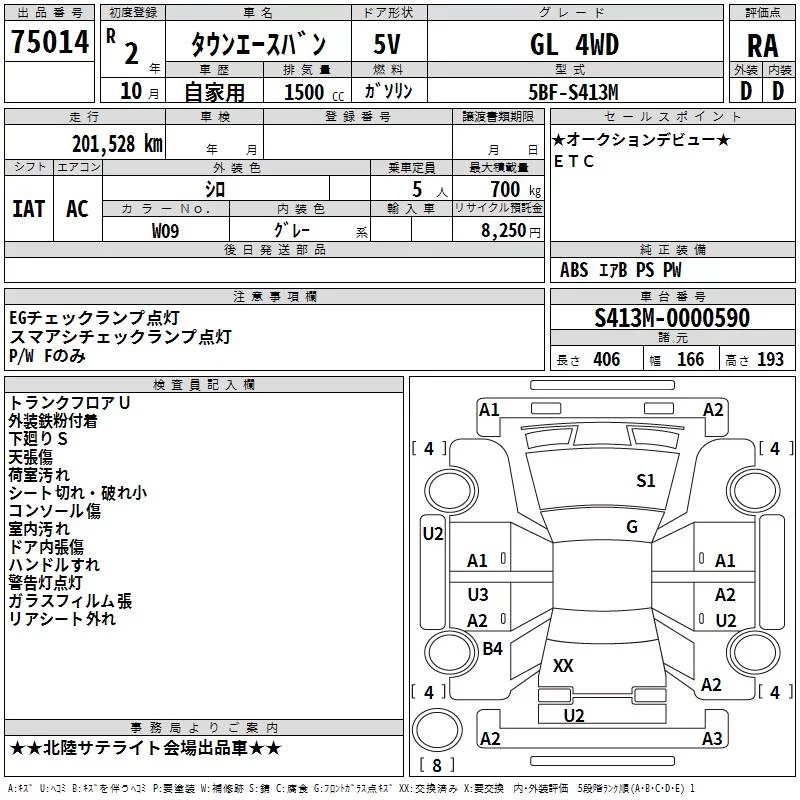 Toyota TOWN ACE VAN с аукциона Японии TAA Chubu лот № 75014