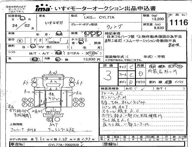 Isuzu TRUCK с аукциона Японии Isuzu Kyushu лот № 1116