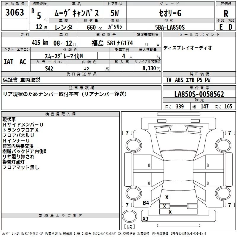 Daihatsu MOVE CANBUS с аукциона Японии TAA Tohoku лот № 3063