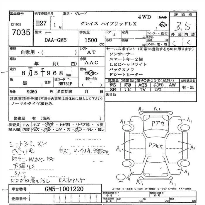 Honda GRACE с аукциона Японии JU Gunma лот № 7035