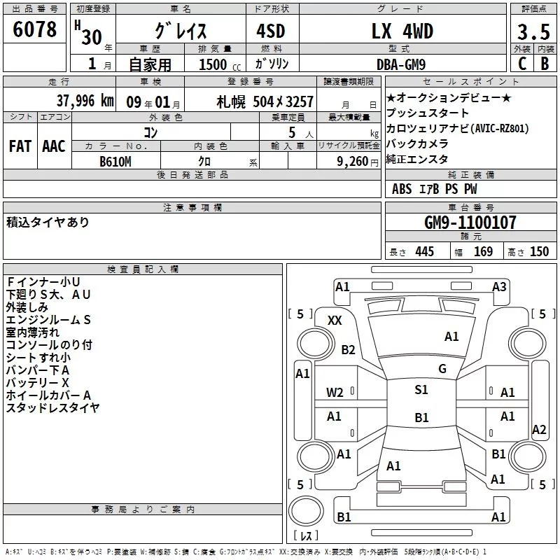 Honda GRACE с аукциона Японии TAA Hokkaido лот № 6078