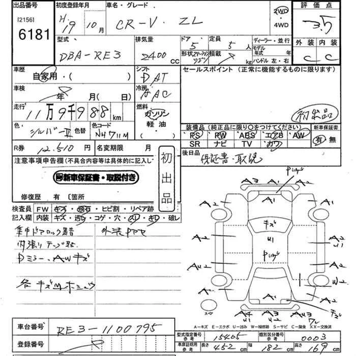 Honda CR-V с аукциона Японии JU Kanagawa лот № 6181