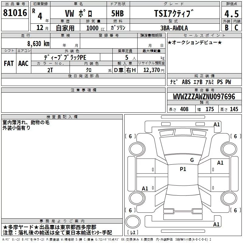 Volkswagen POLO с аукциона Японии TAA Kanto лот № 81016