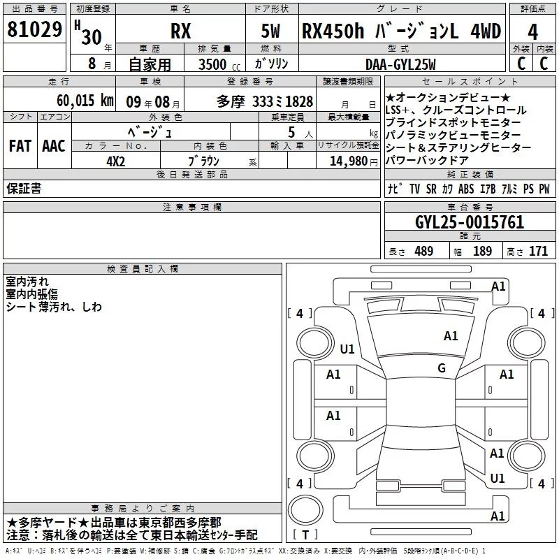Lexus RX с аукциона Японии TAA Kanto лот № 81029