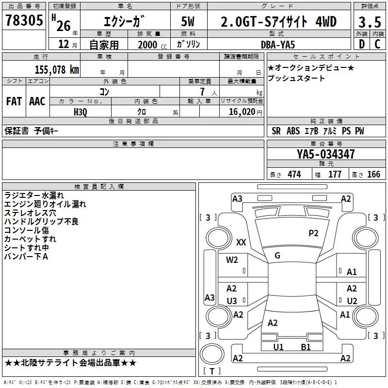 Subaru EXIGA с аукциона Японии TAA Chubu лот № 78305