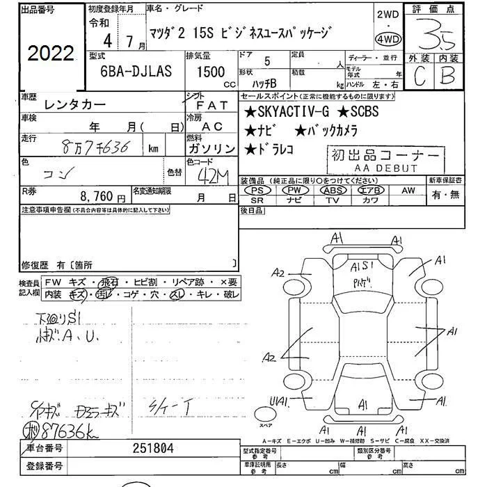 Mazda MAZDA2 с аукциона Японии JU Fukushima лот № 2022