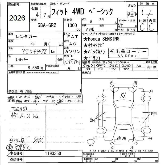 Honda FIT с аукциона Японии JU Fukushima лот № 2026