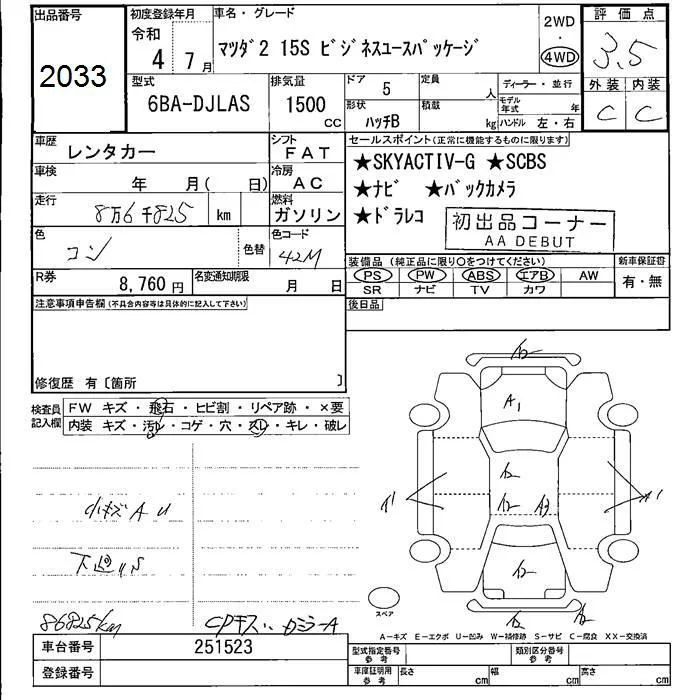 Mazda MAZDA2 с аукциона Японии JU Fukushima лот № 2033