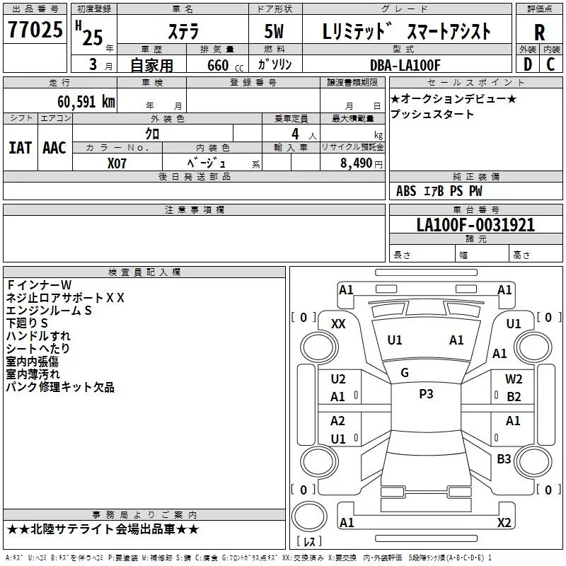 Subaru STELLA с аукциона Японии TAA Chubu лот № 77025