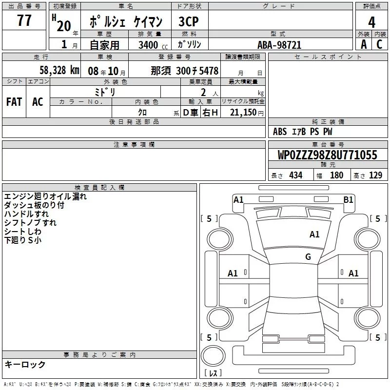 Porsche Cayman с аукциона Японии TAA Tohoku лот № 77