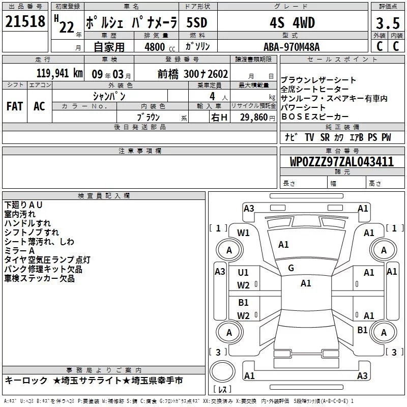 Porsche PANAMERA с аукциона Японии TAA Kanto лот № 21518