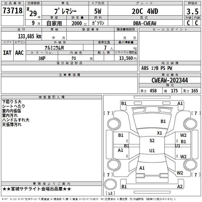 Mazda PREMACY с аукциона Японии TAA Tohoku лот № 73718