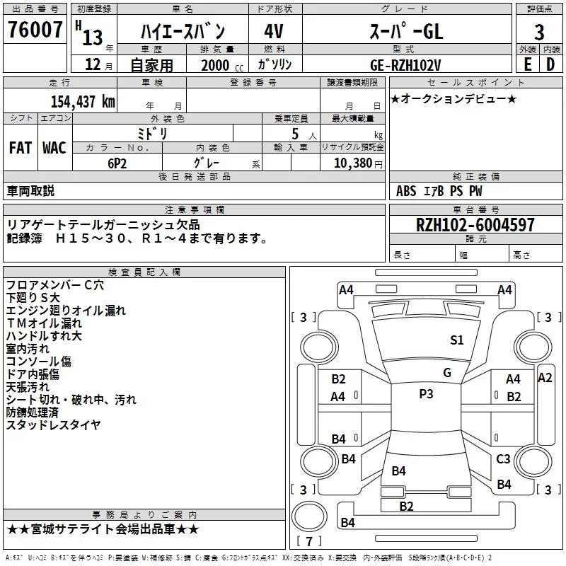 Toyota HIACE VAN с аукциона Японии TAA Tohoku лот № 76007