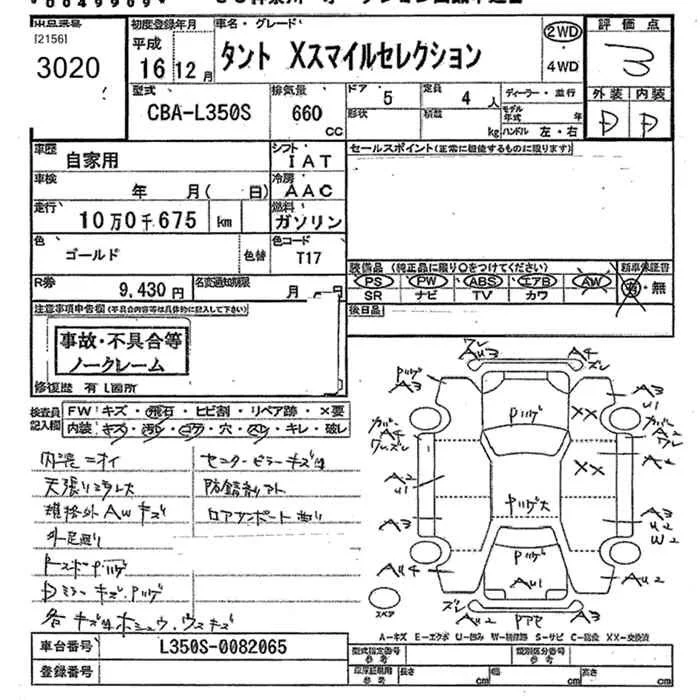 Daihatsu TANTO с аукциона Японии JU Kanagawa лот № 3020