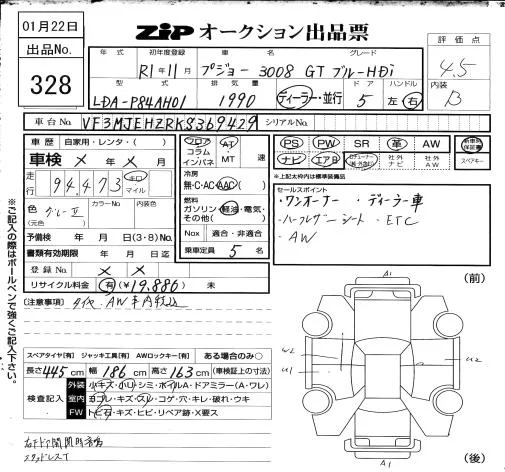 Peugeot 3008 с аукциона Японии ZIP Osaka лот № 328
