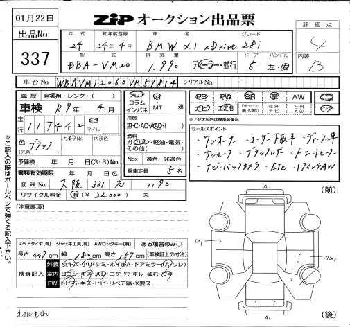 BMW X1 с аукциона Японии ZIP Osaka лот № 337