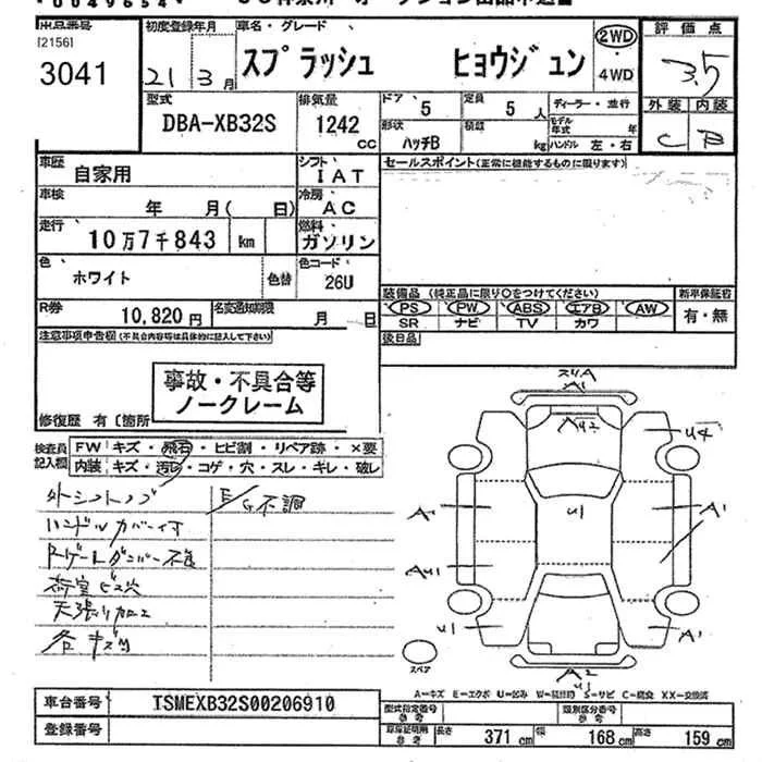 Suzuki SPLASH с аукциона Японии JU Kanagawa лот № 3041