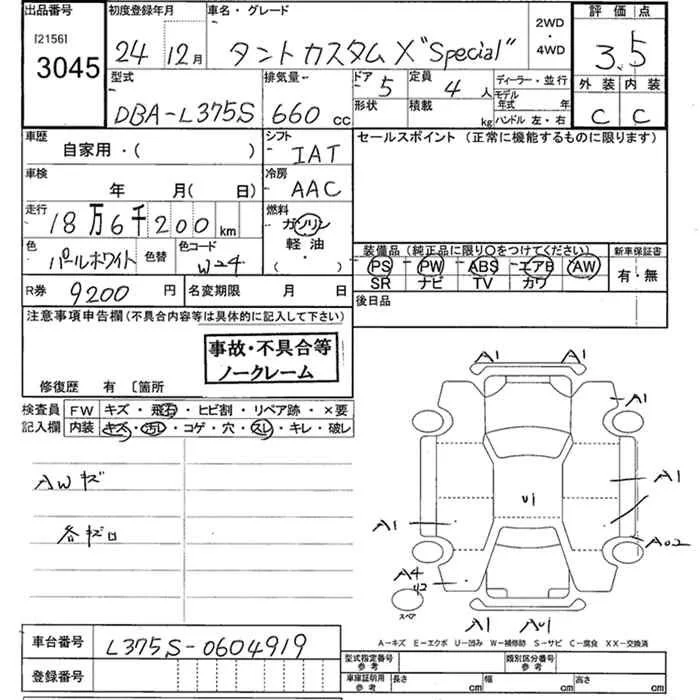 Daihatsu TANTO с аукциона Японии JU Kanagawa лот № 3045