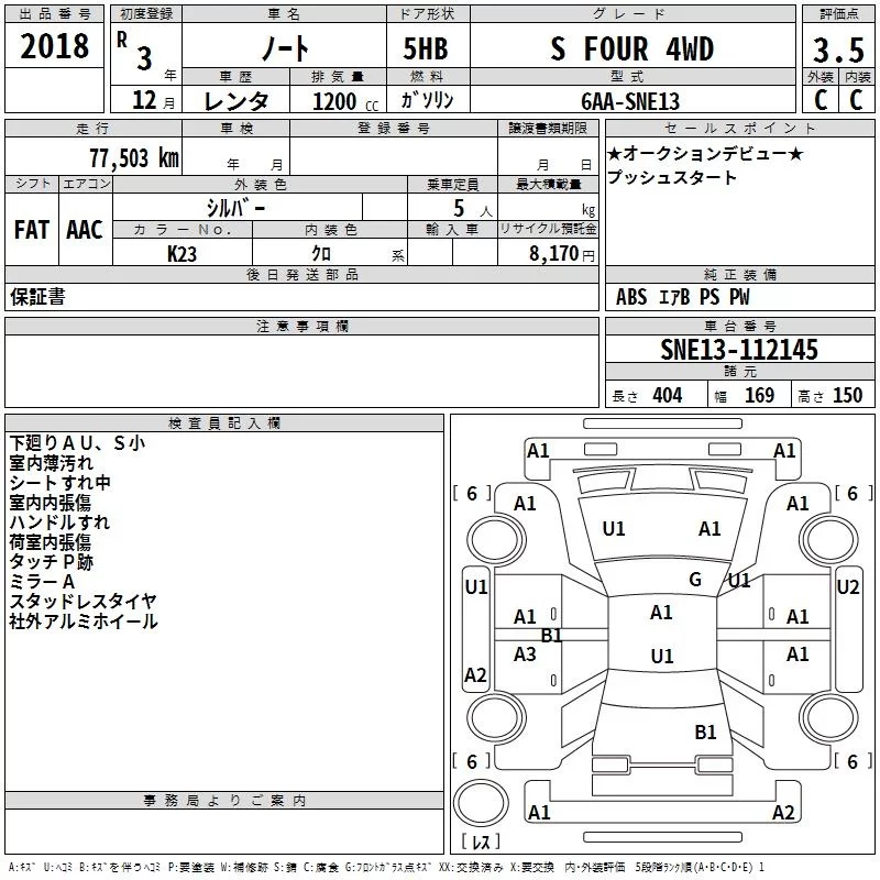 Nissan NOTE с аукциона Японии TAA Hokkaido лот № 2018