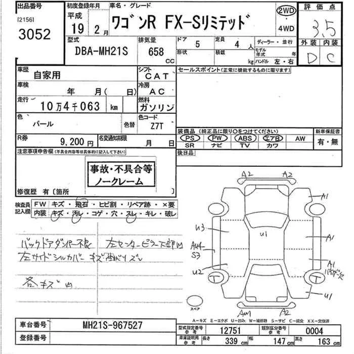 Suzuki WAGON R с аукциона Японии JU Kanagawa лот № 3052