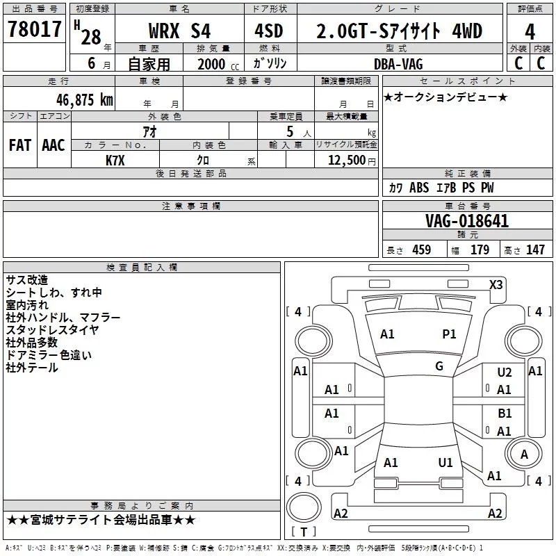 Subaru WRX с аукциона Японии TAA Tohoku лот № 78017