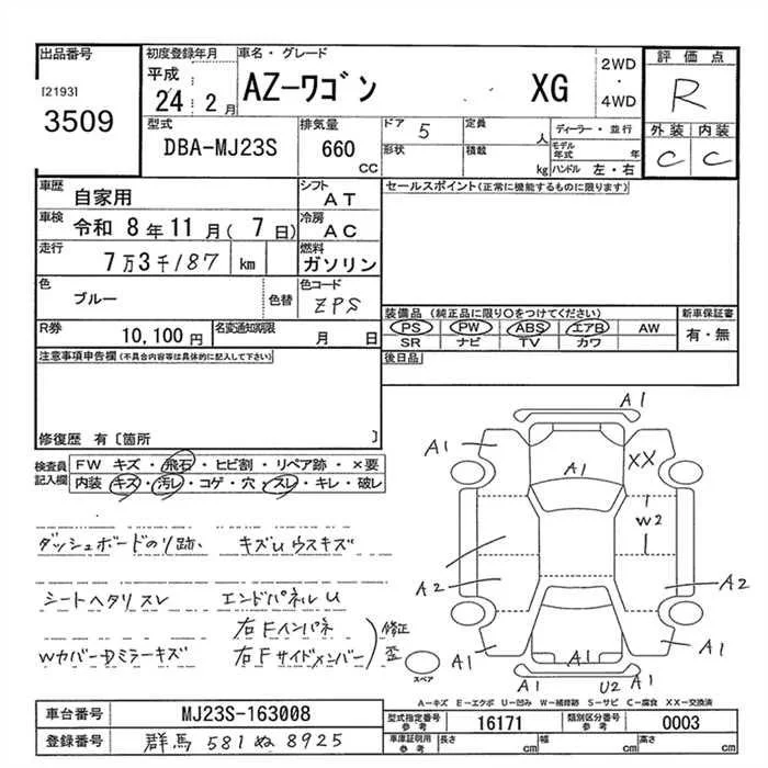 Mazda AZ WAGON с аукциона Японии JU Gunma лот № 3509
