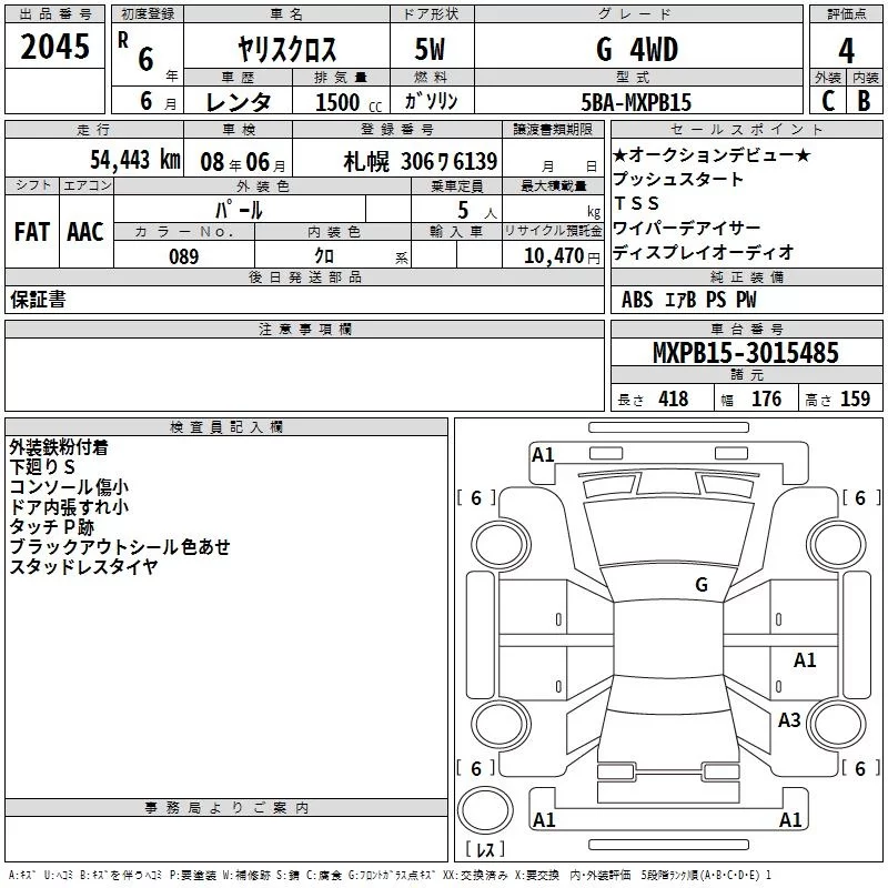Toyota YARIS CROSS с аукциона Японии TAA Hokkaido лот № 2045