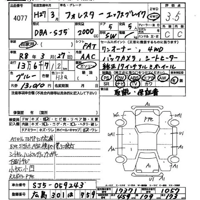 Subaru FORESTER с аукциона Японии JU Hiroshima лот № 4077
