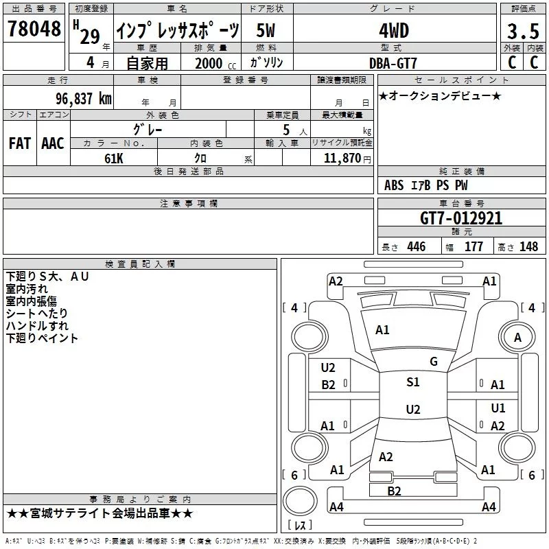Subaru XV с аукциона Японии TAA Tohoku лот № 78048