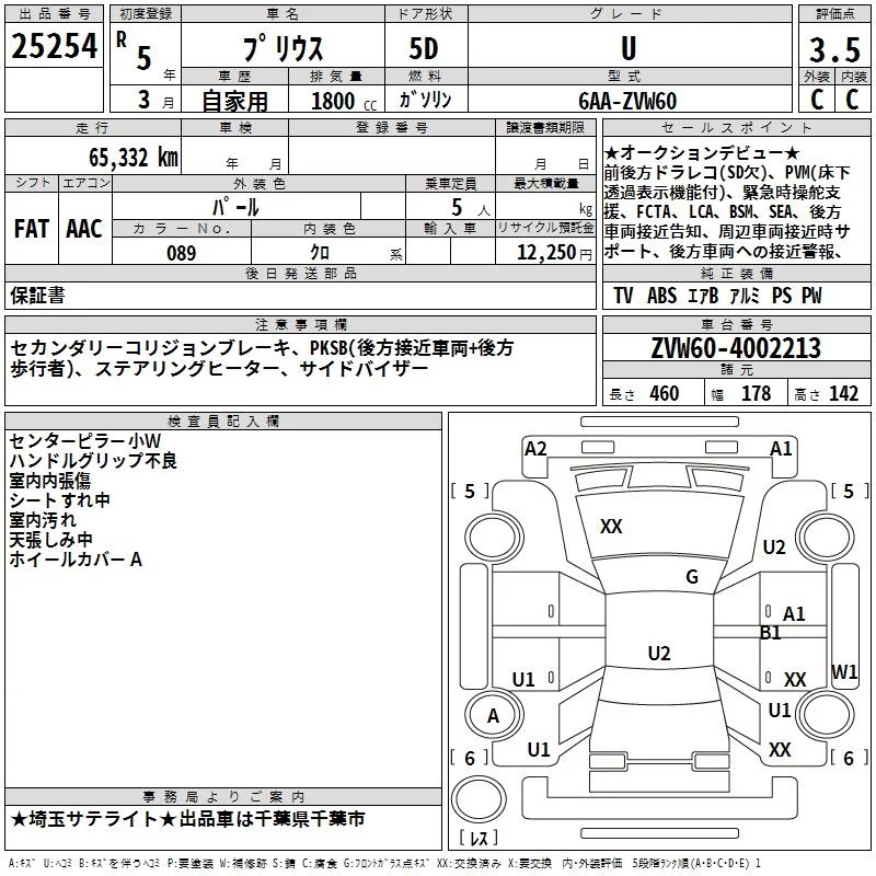 Toyota PRIUS с аукциона Японии TAA Kanto лот № 25254