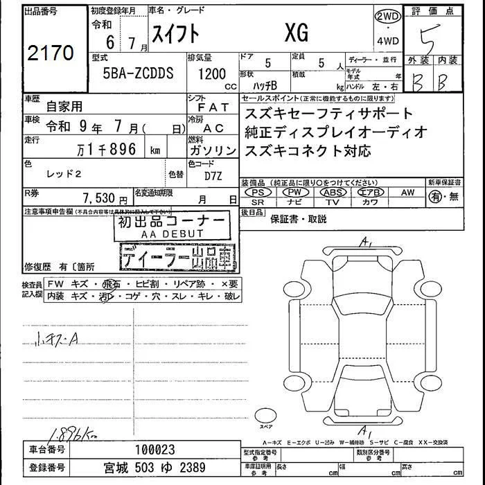Suzuki SWIFT с аукциона Японии JU Fukushima лот № 2170